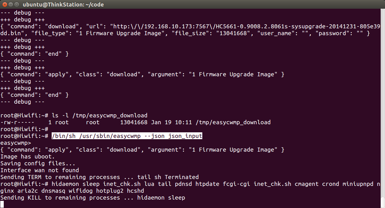 | Description | I upgrade firmware from 0.9007 to 0.9008, then from 0.9008 to 0.9007, over and again. easycwmp download the firmware to `/tmp/easycwmp_download`, than auto run `sysupgrade`, sometimes ok and auto reboot, sometimes return error 141, but at this time I manually run `/bin/sh /usr/sbin/easycwmp --json json_input` or `/sbin/sysupgrade /tmp/easycwmp_download` are all OK. when display error, and there is a new file /etc/easycwmp/.backup.xml, and easycwmp auto exit, and can not start again. When I delete this file, easycwmp can start again. detail at https://github.com/pivasoftware/easycwmp/issues/14 | ||||